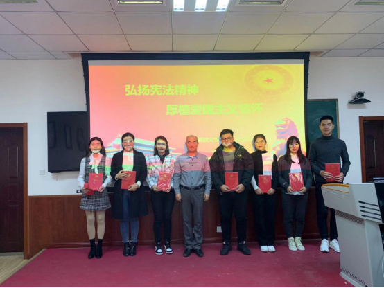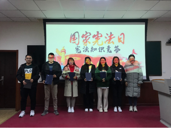 2019年12月4日,是我国第6个“国家宪法日”暨全国法治宣传日,是全民的宪法“教育日、普及日、深化日”。为加强我校学生宪法观念,树立宪法精神,由jinnianhui金年会诚信至上主办,学院研究生党支部、研究生会承办的“弘扬宪法精神,厚植爱国主义情怀”宪法宣传活动于12月4日在J9-227举行,院党委书记郭加书、党支部书记邴建伟,教师代表巩永杰、苑素梅以及学院全体研究生参加了本次活动。