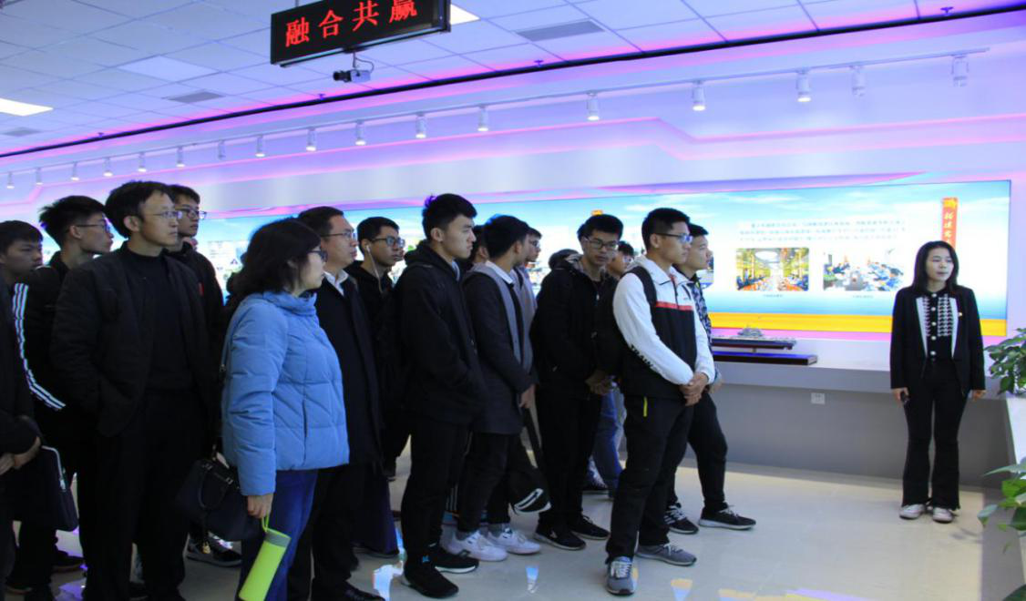 实践教学团队一行首先参观了青岛古镇口军民融合创新示范区。在技术装备保障中心,了解了军民融合技术装备保障机制与新模式的探索;在岸基维修维保厂房,参观了为军方HM研制的舰船智能升降舷梯的展示;在3D打印共享服务中心,参观了军民融合区3D打印项目展示。通过参观展览,学生们了解了军民融合发展的内涵以及军民融合创新示范区建设取得的进展。