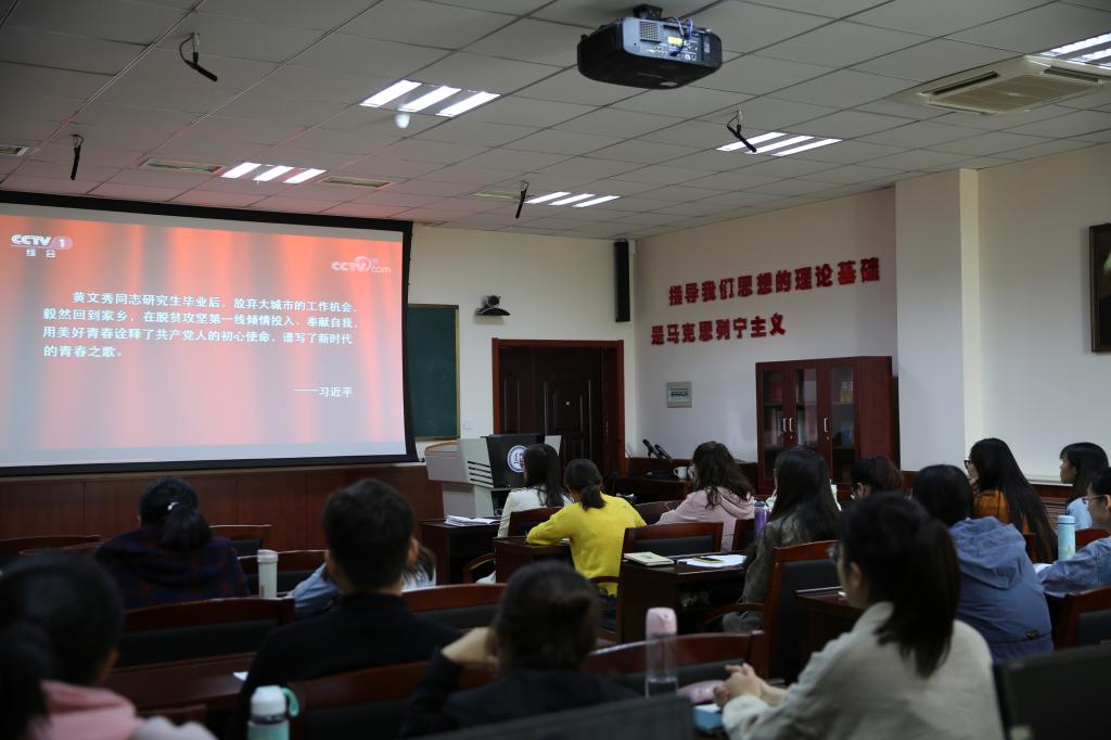 研究生党支部书记邴建伟勉励同学们要时刻以党员的标准严格要求自己,保持端正的入党动机,坚定理想信念,树立正确的价值观。同时,还应从榜样身上汲取积极向上的力量,带动身边更多的人成为榜样,发挥党员先锋模范作用。同学们在平时的学习和生活中也要勇于担当,甘于奉献,向典型学习、向榜样致敬。(王侨)