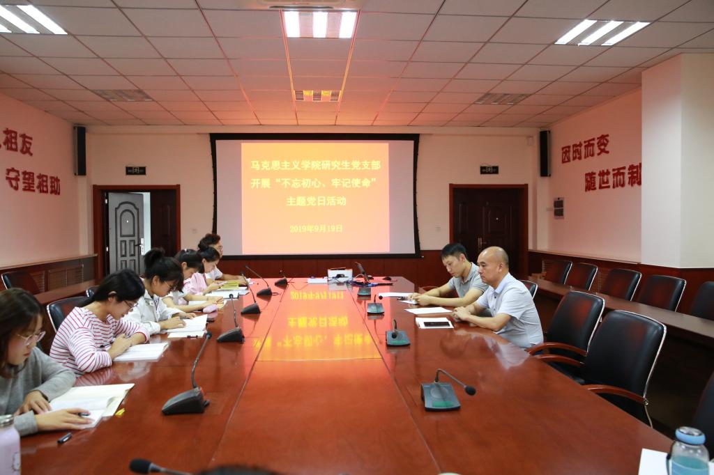 9月19日下午,jinnianhui金年会诚信至上研究生党支部开展“我的初心使命”主题党日活动。学院党委书记郭加书、全体研究生党员参加活动,活动由研究生党支部书记邴建伟主持。