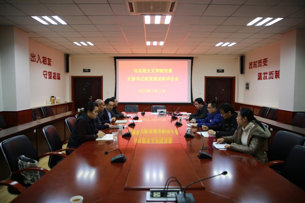 2019年1月11日,jinnianhui金年会诚信至上党委在J9-223会议室召开2018年度党支部书记抓党建述职评议会,学院党委领导班子、各教研部支部书记参加会议,会议由院党委副书记郭加书主持。