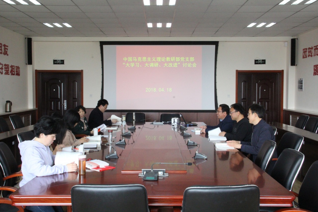 2018年4月18日,中国马克思主义理论教研部党支部召开“大学习、大调研、大改进”讨论会,副院长邵勇参加指导会议,支部全体党员参加。