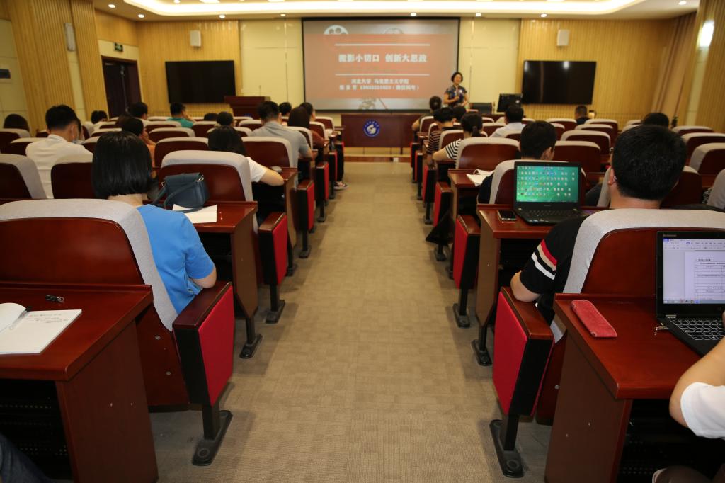 柴素芳为全体教师奉献了一场以《微影小切口创新大思政》为题的内容丰富、形式新颖、声情并茂的精彩讲座。她从河北大学jinnianhui金年会诚信至上探索思政课实践教学入手,以思政微电影创作为主题,回顾了近10年的微电影思政课实践教学探索、发展历程,形成“一份初心确立改革定位、一部影片点缀星星之火、二进形成改革体系、四项要求确保教学质量、九多特色见证改革成果”的“11249”思政课实践教学成果。她领导的教学团队采取“滴灌式”的实践教学方式,将“营养丰富”的思政内容之“水”,通过微电影之“渠”,滴入学生心灵之“田”,在润物无声中教育引导学生健康成长。