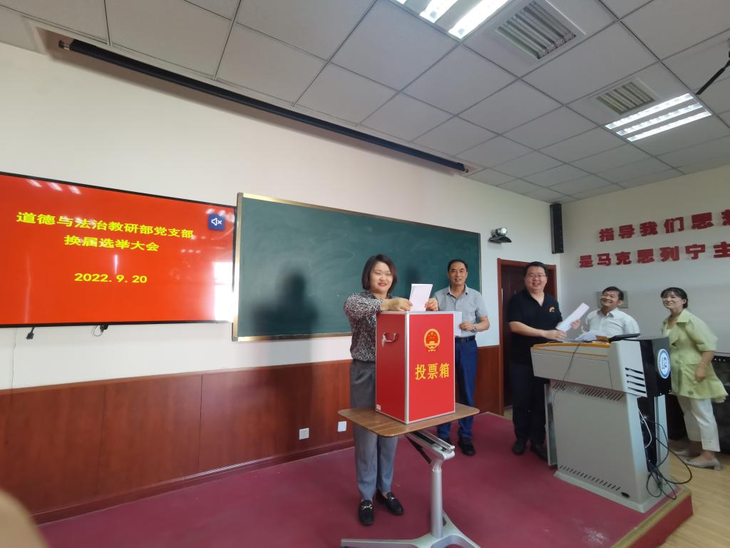 根据学校《关于做好基层党支部换届选举工作的通知》要求和学院党委相关工作安排,9月20日下午,道德与法治教研部党支部在J9-227会议室召开党员大会,选举新一届支委会和党支部书记,会议由支部书记孙健主持。