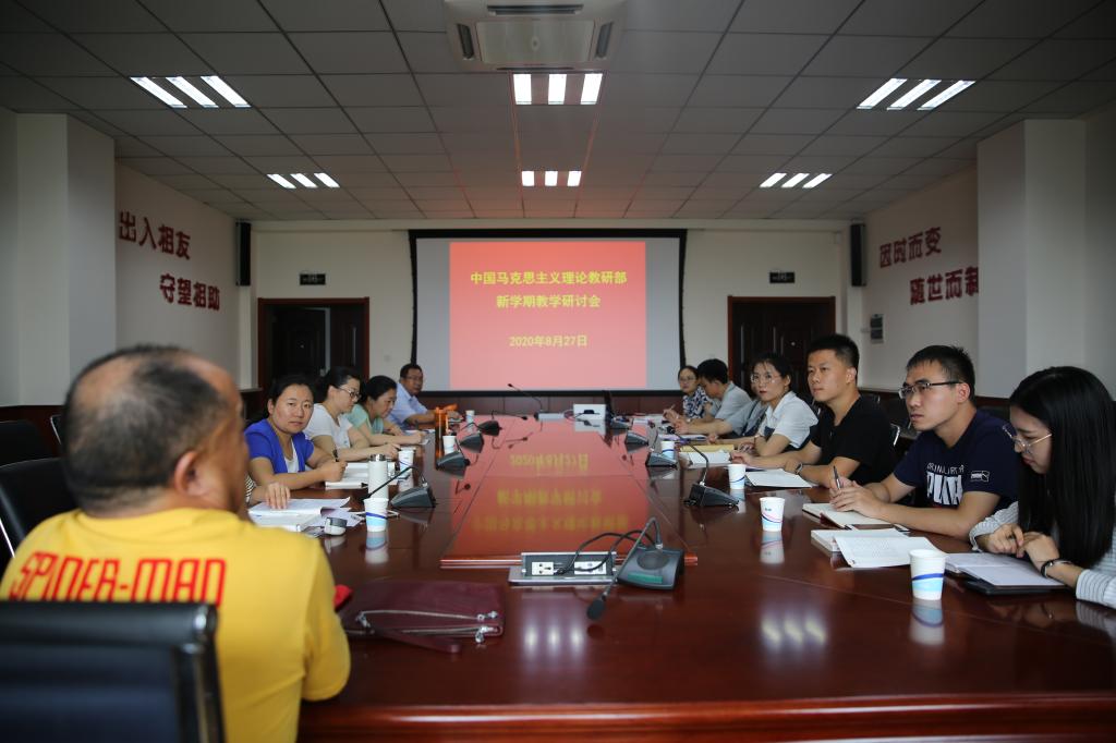 为保障新学期教学工作扎实有效进行,根据学院相关工作部署,8月27日下午,中国马克思主义理论教研部在J9-223举行2020-2021学年第一学期首次教学研讨会议,教研部全体教师参加会议,会议由教研部主任周月主持。