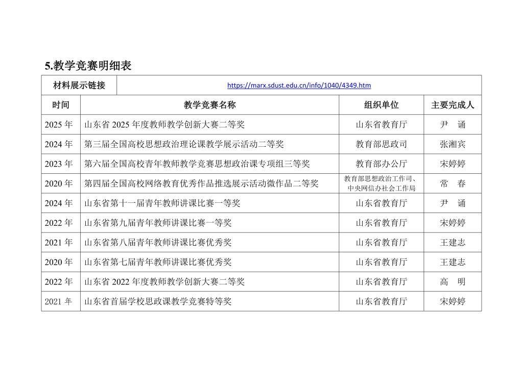 材料五:教学竞赛获奖情况
