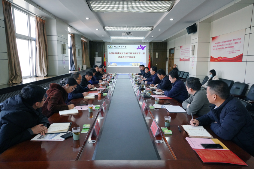2月19日上午,校党委书记和志强、副校长冯鸿雁、赵强与藁城区政府副区长王晓东一行在bat365官网主楼四楼会议室交流座谈。双方就科创园项目建设、科技创新合作及招商引资等议题展开深入讨论,旨在进一步推动校地合作,促进科技成果转化,为区域经济高质量发展注入新动力。