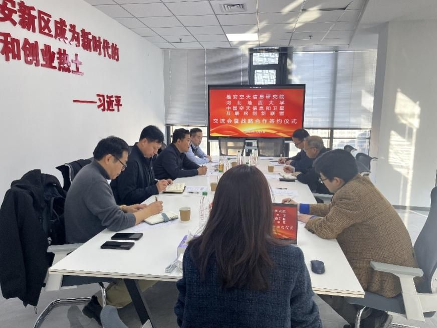 和志强详细介绍了学校发展历程、办学特色定位、学校学科专业特色。他指出,学校高度注重服务国家和行业重大战略需求,未来学校将依托遥感、测绘等学科优势,发挥行业高校特色,推动与雄安空天信息研究院在科研联合攻关、重大平台建设、高级别项目申报等方面的合作,共同为空天信息产业和服务新区高标准高质量建设服务。