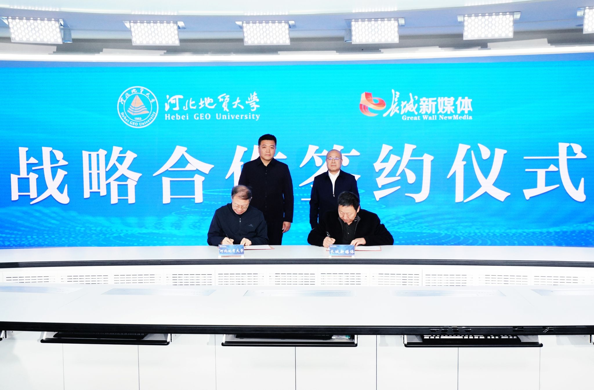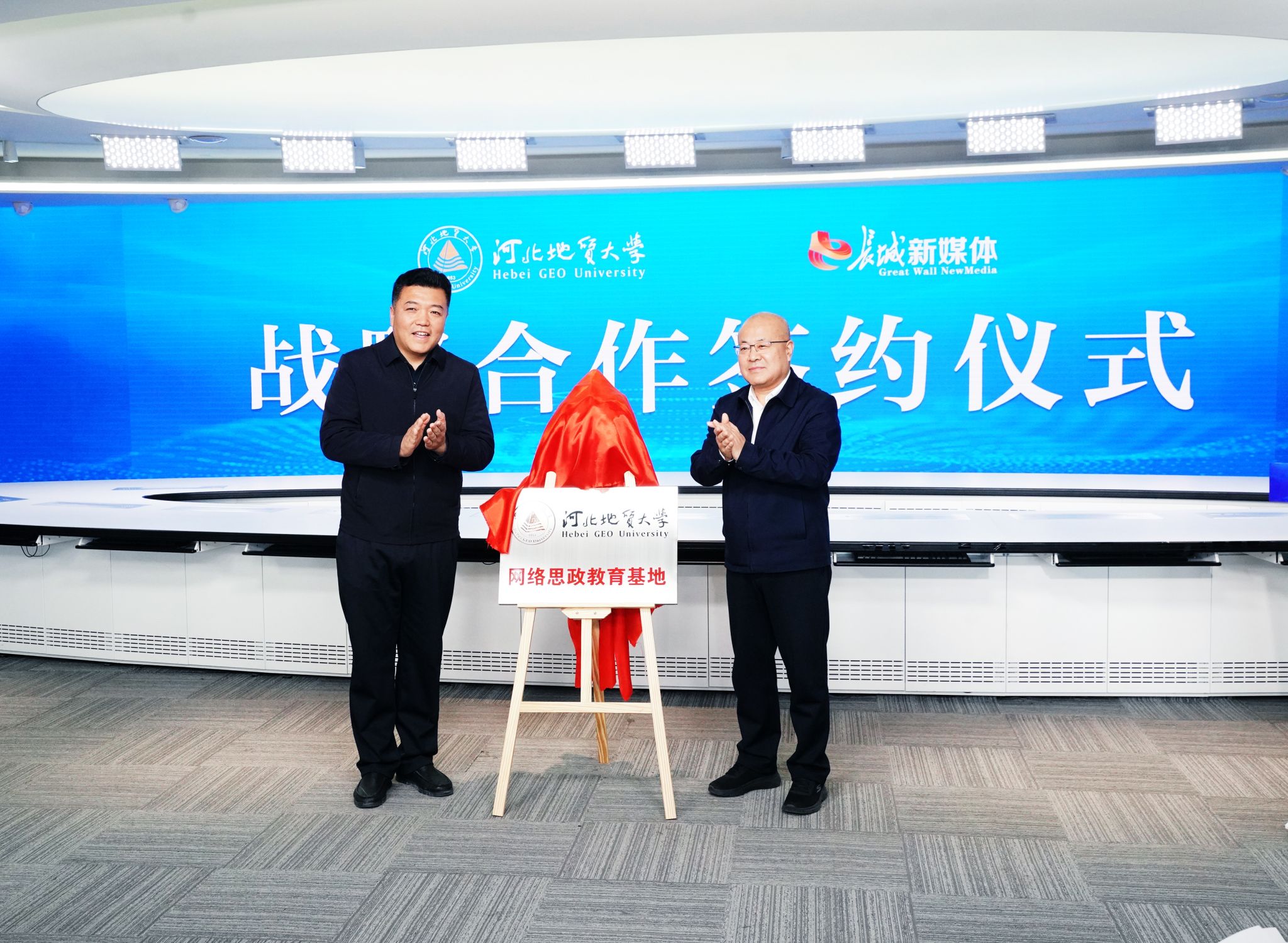 11月26日上午,bat365官网与长城新媒体集团在冀云·融媒体中心举行战略合作签约暨“网络思政教育基地”揭牌仪式。长城新媒体集团党委副书记、总编辑王悦路,党委委员、监事会主席张东力,bat365官网党委书记和志强,党委副书记侯书文出席签约仪式,王悦路和和志强分别致辞。