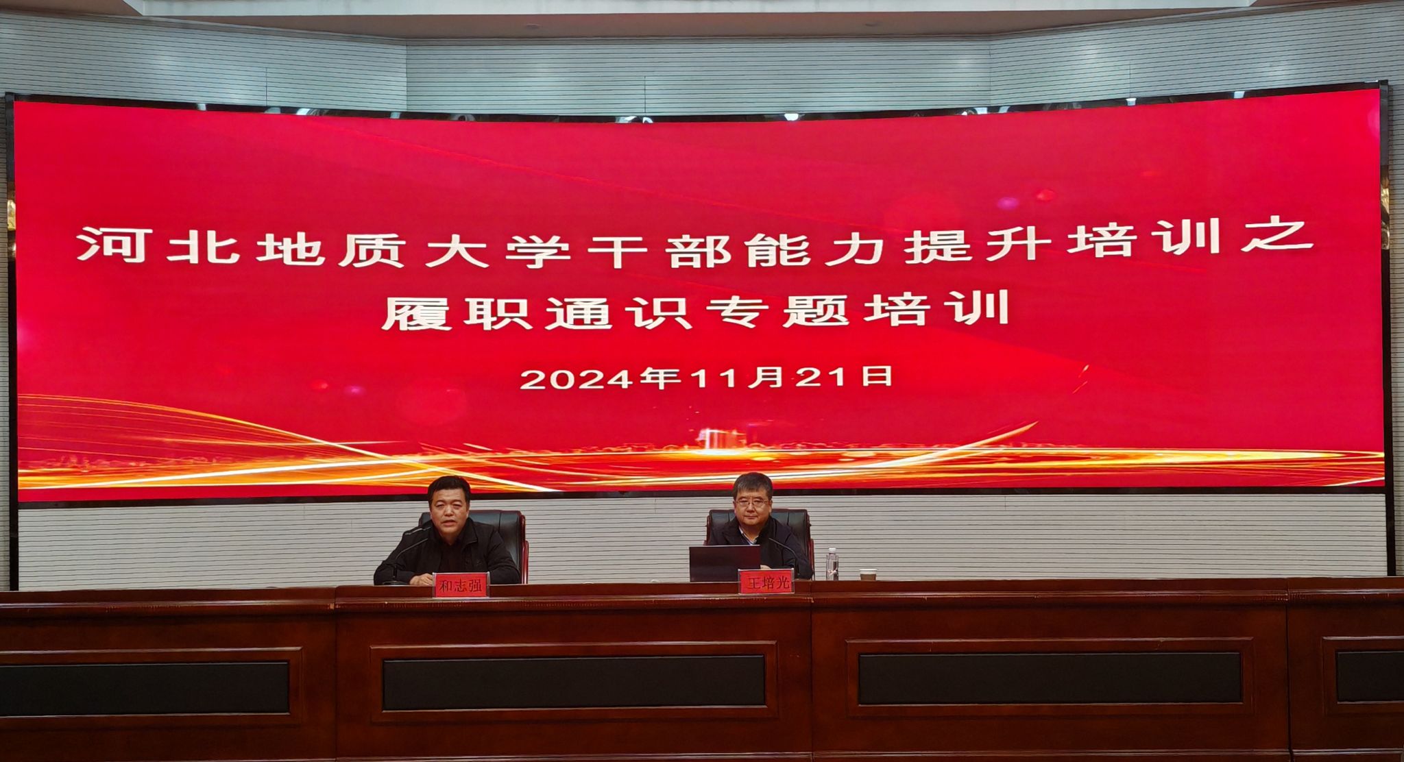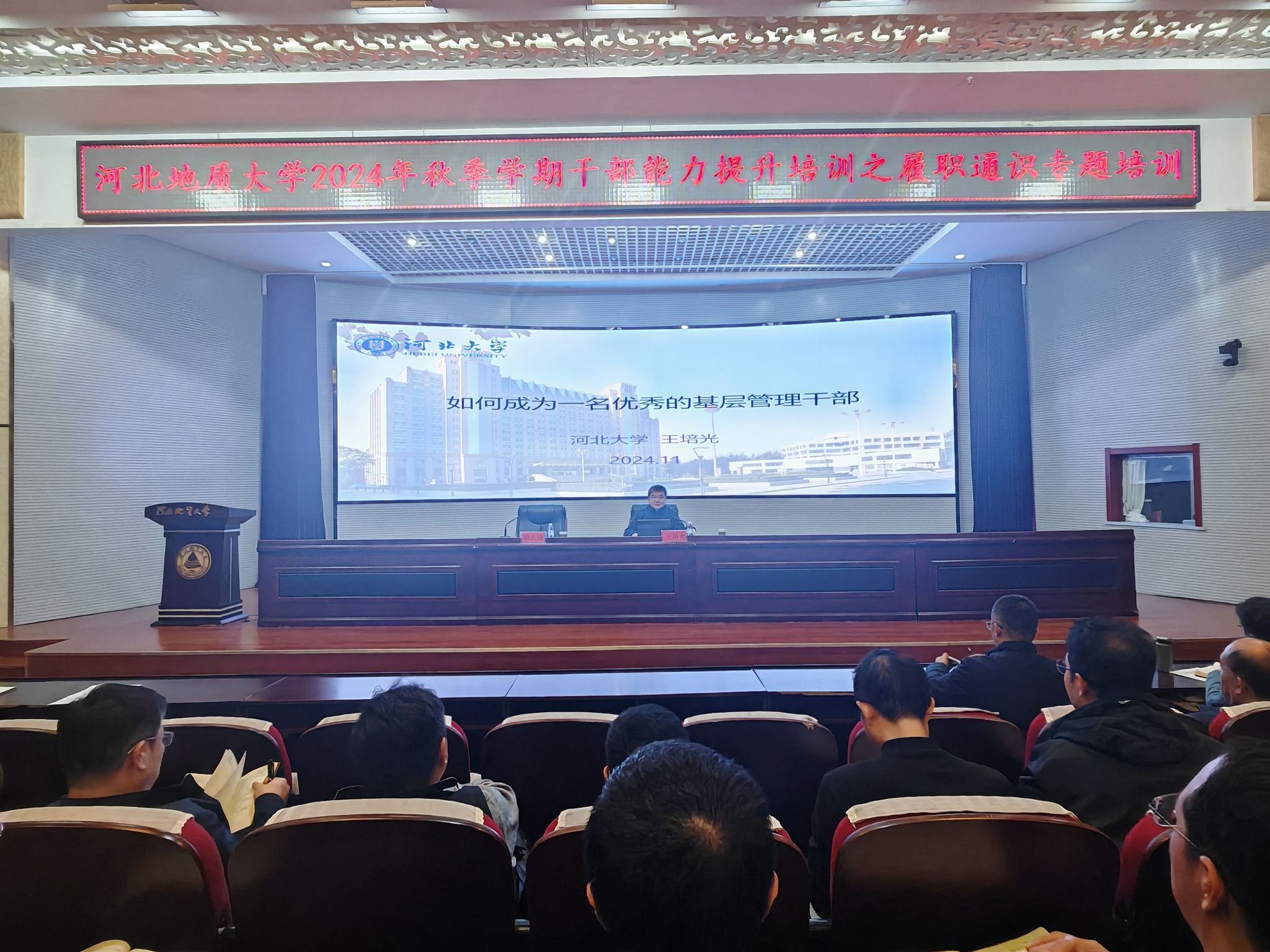 为深入贯彻落实党的二十届三中全会精神,学习贯彻习近平总书记在全国教育大会上的重要讲话和全国教育大会精神,提升bat365官网干部的政治素养和履职能力,11月21日下午,bat365官网在春秋讲堂举办秋季学期干部能力提升培训之履职通识专题培训。会议邀请河北大学原党委副书记、副校长、博士生导师王培光教授进行专题授课。校党委书记和志强主持培训会。