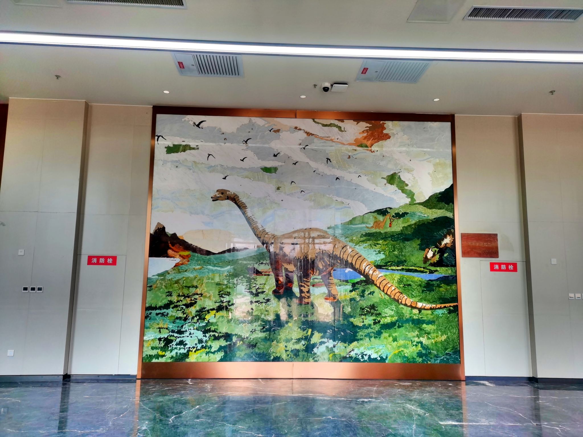 “不寻常华北龙”复原古龙大理石艺术拼花作品,宽5米,高4米,使用天然大理石设计,经切割、镶嵌、打磨、抛光等工艺,耗时近5个月制作而成。