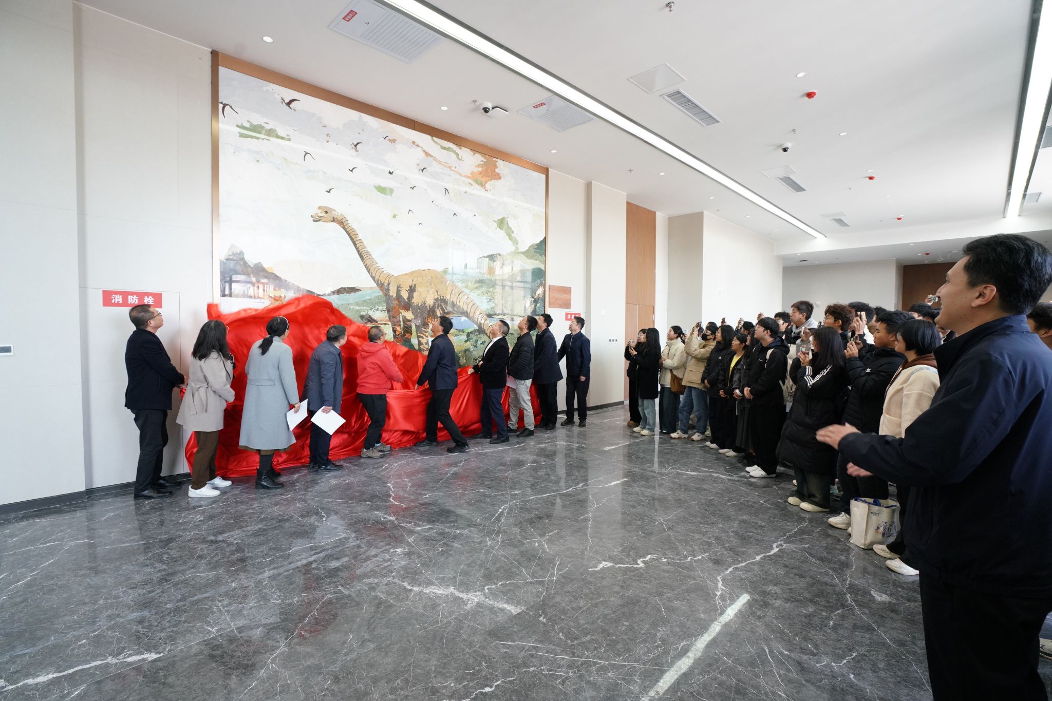 与会领导、校友和教师代表共同为作品揭幕
