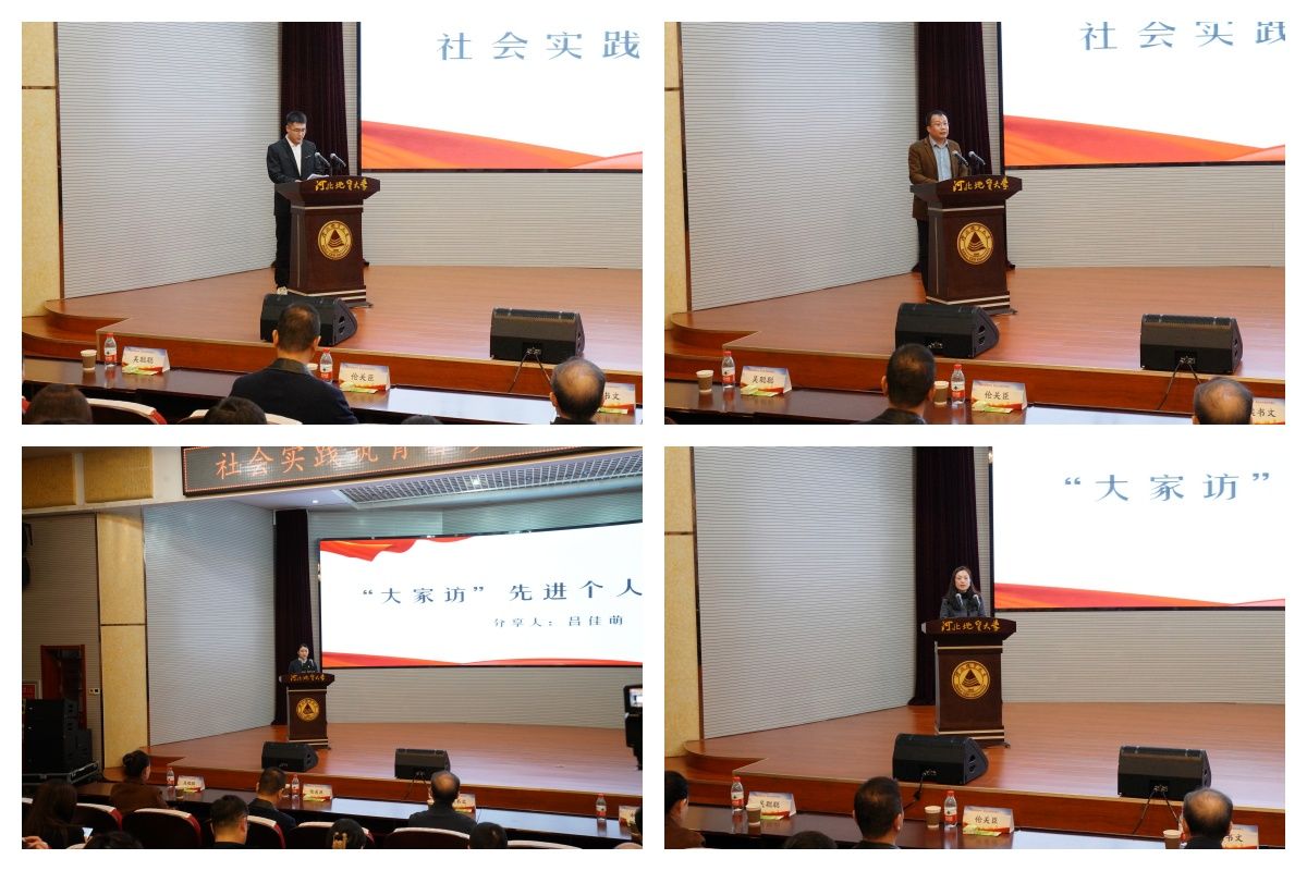 品牌实践项目“探秘特殊地下水”团队成员郑亚东、品牌实践项目“乡土规梦”实践团指导教师任健作为社会实践获奖代表进行发言,介绍了bat365官网品牌实践项目的组建情况、取得的服务成效和育人成果。艺术学院辅导员吕佳萌、信息工程学院副书记贾佳作为辅导员“大家访”获奖代表进行发言,总结了家校合作、协同育人的创新做法。