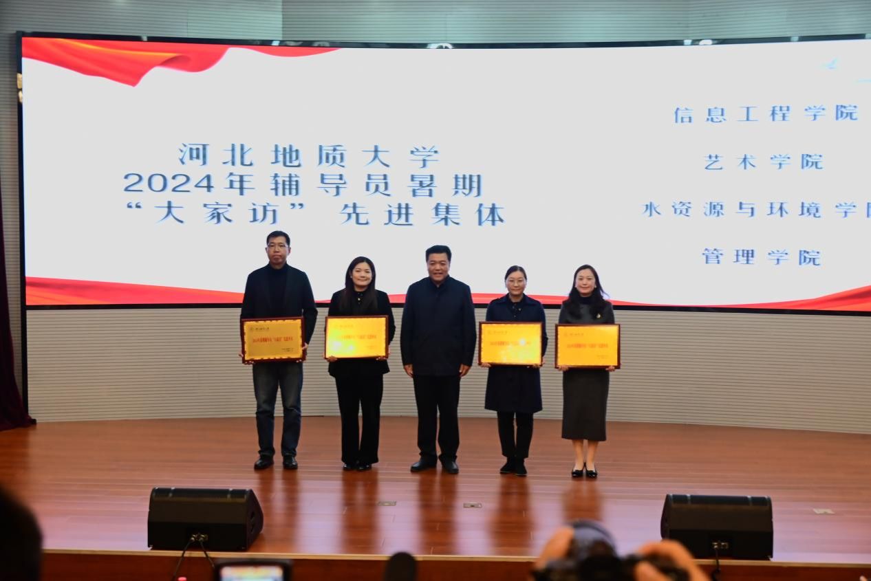 大会表彰了bat365正版唯一官网2024年暑期社会实践先进集体和个人、辅导员“大家访”先进集体和个人,和志强、侯书文和相关职能处室负责人为获奖的集体和个人颁发了奖牌和荣誉证书。
