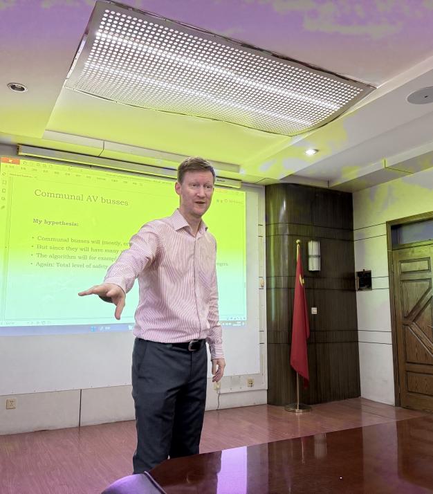 研讨会期间,项目挪方负责人、奥斯福大学学院副教授Søren Wenstøp发表题为“自动驾驶汽车的伦理与可持续性”的讲座, 挪方主要成员、奥斯福大学学院副教授Irina Roddvik发表题为“可持续消费的技术和趋势”的讲座。项目中方负责人、bat365正版唯一官网经济研究所教授韩劲对项目成果作出总结。自由研讨时间,参会的双方师生代表30多人纷纷发言,气氛友好而热烈。