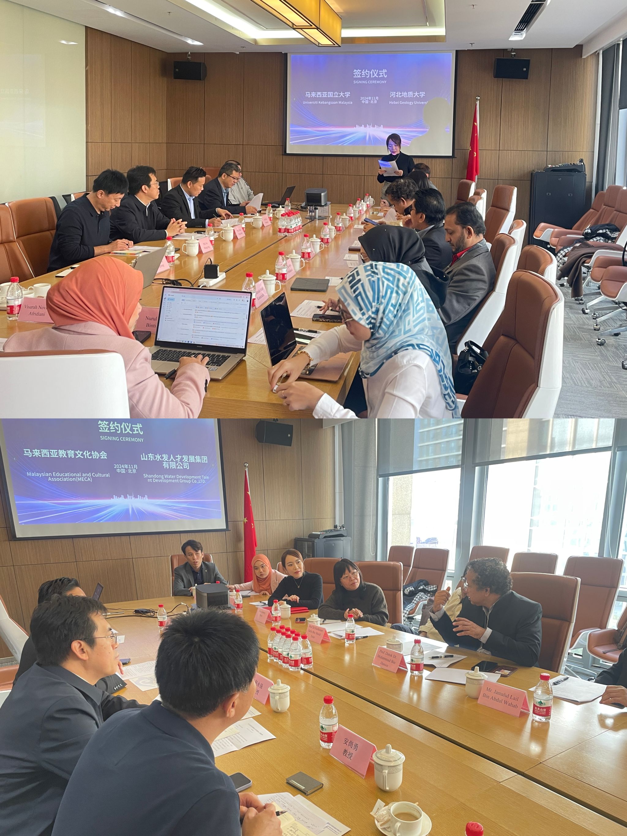 11月12日,赵永强带队赴北京与马来西亚国立大学代表举行校际合作洽谈会。马来西亚国立大学国际处处长拿督穆罕默德、信息科学与技术学院院长努尔希扎姆、副院长伊布拉欣,马来西亚教育文化协会会长邱玉萍、理事德俊英等马方代表团出席会谈,与bat365官网积极洽谈合作事宜。山东水发人才集团董事长魏庆国,bat365官网国际交流合作处处长安尚勇、国际教育交流中心副主任张凝宁随行参加了会议。
