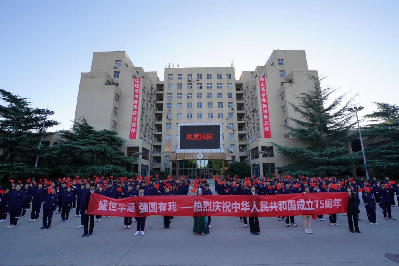 在主楼前,在博物馆,在春秋讲堂,在校门前,在“我和祖国共成长”打卡地......同学们引吭高歌、翩翩起舞,深情传唱红色歌曲《我和我的祖国》,在这个伟大的节日里,同学们用自己的方式表达了对伟大祖国的深深热爱,师生们纷纷表达祝福之情:祝福伟大祖国母亲,生日快乐,永远年轻,繁荣昌盛!