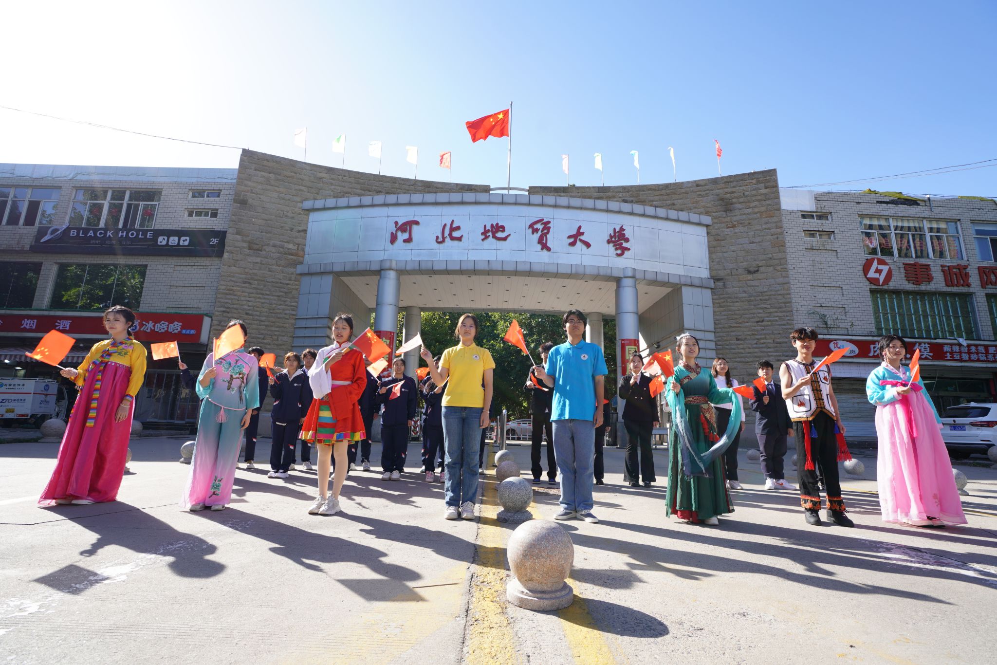 为庆祝中华人民共和国成立75周年,加强大学生爱国主义教育,10月1日,bat365官网在主楼广场前举行庆祝新中国成立75周年“我和祖国共成长”主题活动,主题活动分为升旗仪式、签名活动和红歌传唱。