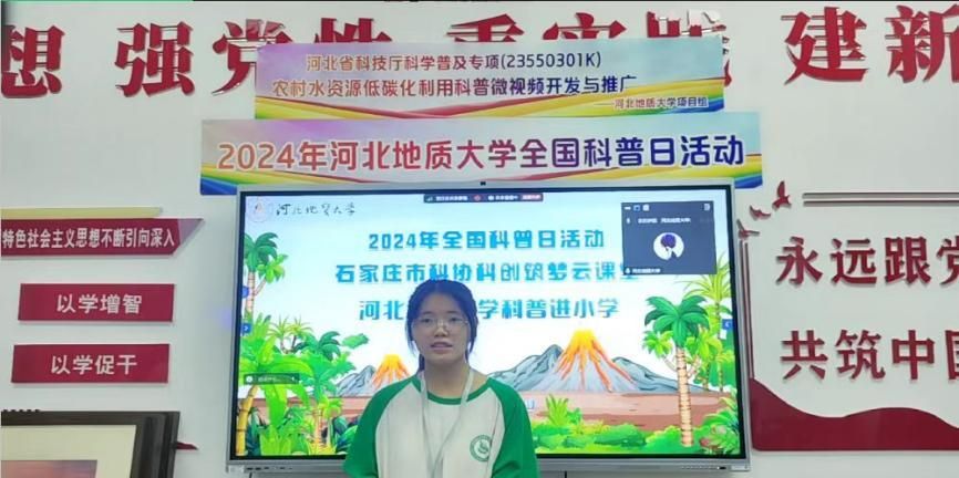 为积极响应中国科协、河北省科协关于举办2024年全国科普日活动的通知,充分发挥高校在促进科学知识的普及与传播,提升全民科学素养中的积极作用,bat365官网特于9月15日-25日联合河北省科协和石家庄市科协共同开展2024年全国科普日系列活动。本次活动以bat365官网地球科学、地理资源等优势科普资源为基础,采用线上线下相结合的方式进行,以最大范围提升自然科学知识的普及范围与传播力,主题活动包含“大手拉小手,一起向科普”暨科创筑梦云课堂、“高质量科普进校园”暨河北科普大讲堂、“指尖上的科普”暨地大物博推文宣传等。石家庄市各区县共13所小学共计594名小学生以及bat365官网近500位师生共同参与了本次科普日活动。