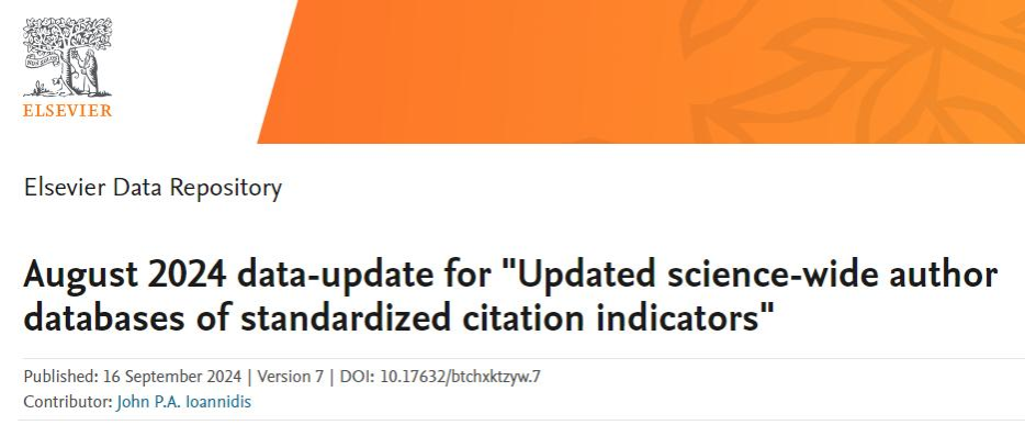 该榜单基于Scopus数据库(截止2024年8月1日)的引用数据系统分析,以论文引用数、H因子、合著者修正的HM因子等6种综合指标,并根据“生涯影响力”和“年度影响力”从全球近700万名科学家中遴选出世界排名前2%的科学家,分为22个领域和174个细分子领域,能够更客观、更真实地反映科学家的影响力,是全球范围内颇具影响力和公信力的实力榜单。