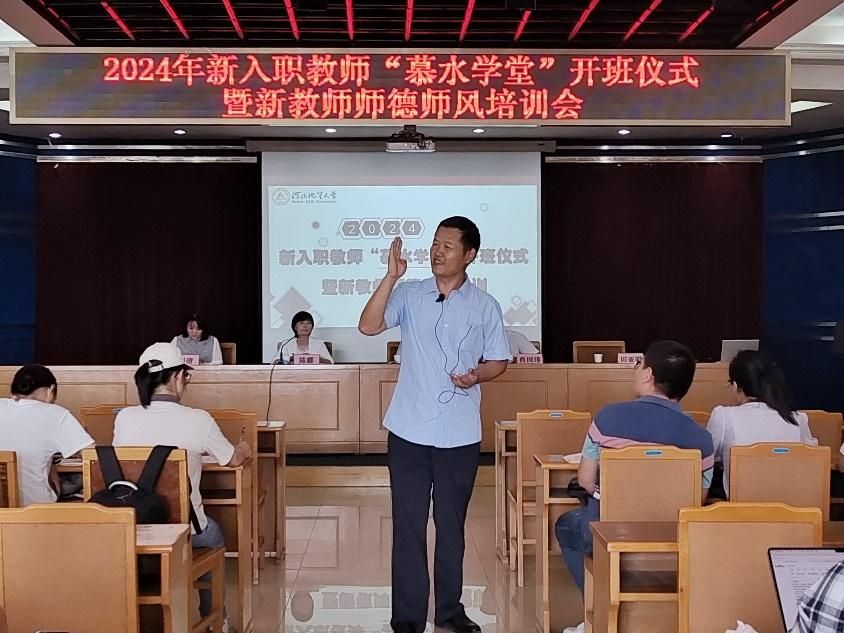 最后,尚国琲为新入职教师作了题为“顶天立地,教书育人,做地质精神的弘扬者和传承人”的专题讲座。尚国琲结合自身的经历向各位新入职教师讲述了青年教师的专业发展奋斗历程,激励新入职教师要有勇气、有担当,将个人发展与学校、国家发展紧密联系在一起,不断增强业务本领,落实高校立德树人根本任务,以榜样为师,传承地质人默默奉献、艰苦奋斗的“师德师风”精神,努力实现顶天立地、报国图强的理想和抱负。