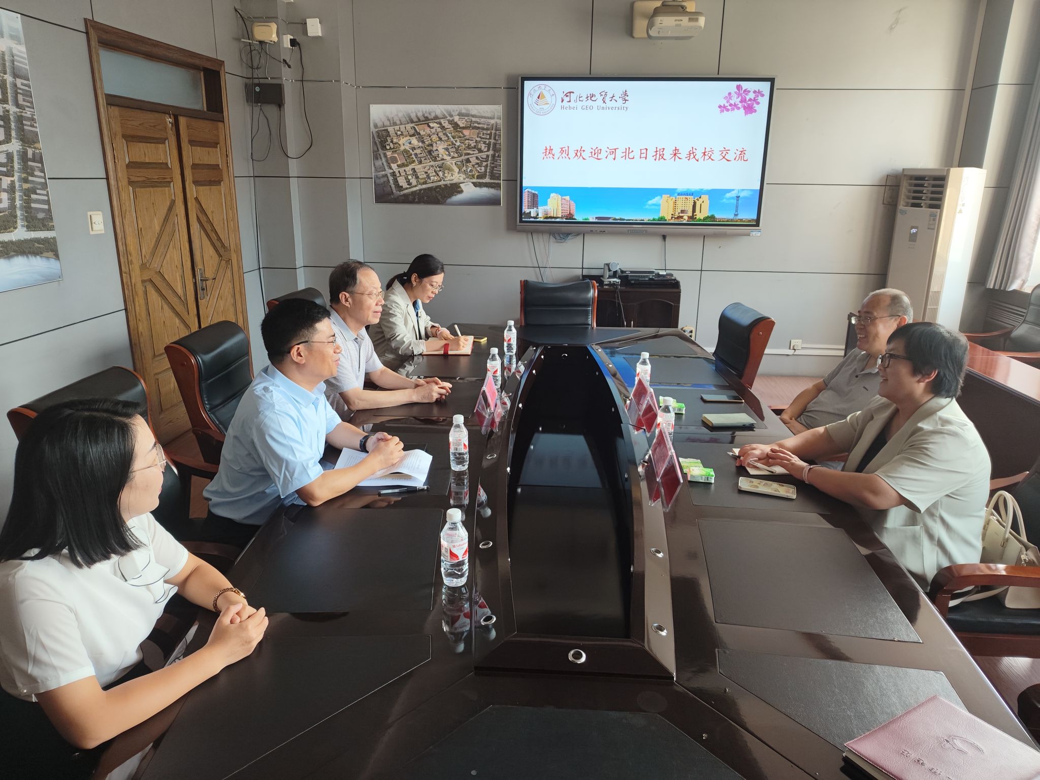 9月13日,河北日报时政新闻部主任王敬照、记者陈华一行来访bat365官网调研交流。校党委副书记侯书文、党委宣传部副部长张耀东、科技处李百华、地球科学学院王智慧、党委宣传部耿凯参加座谈会。