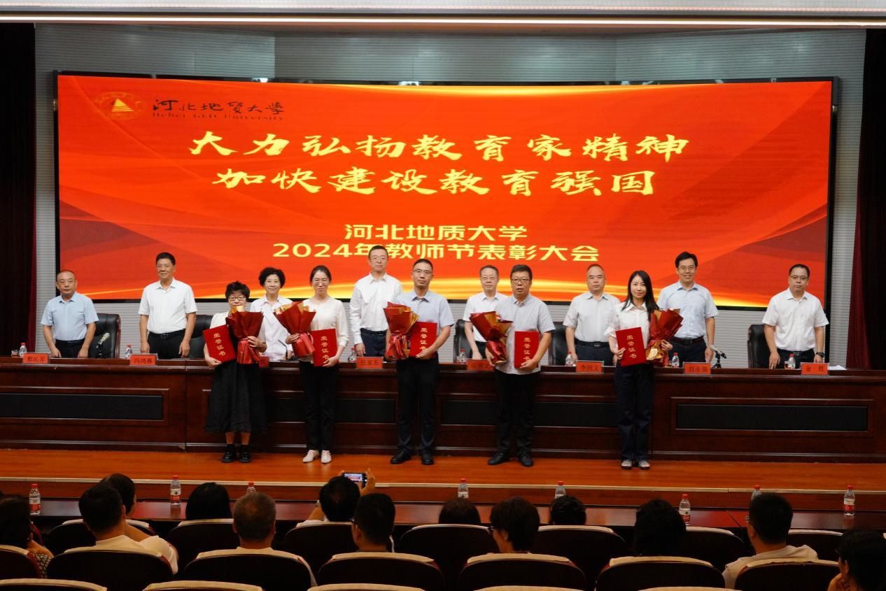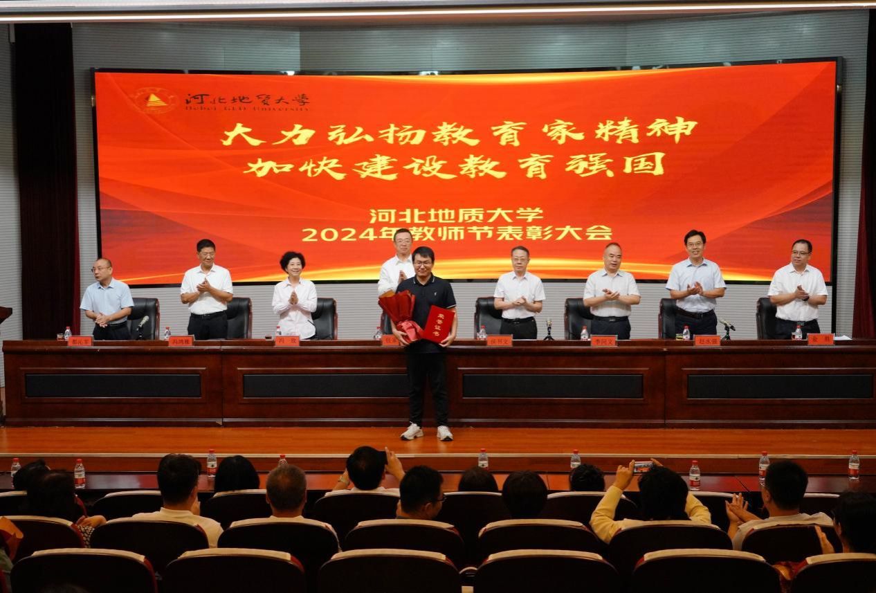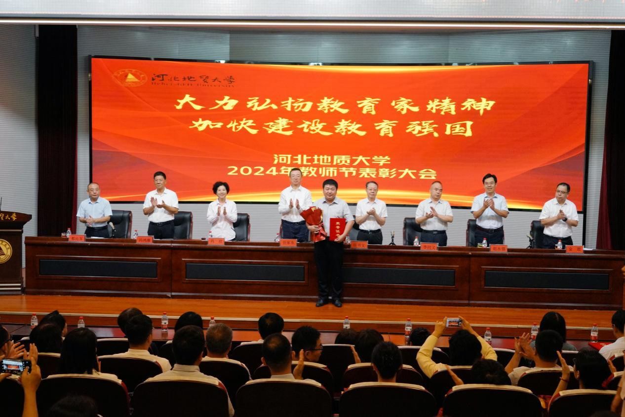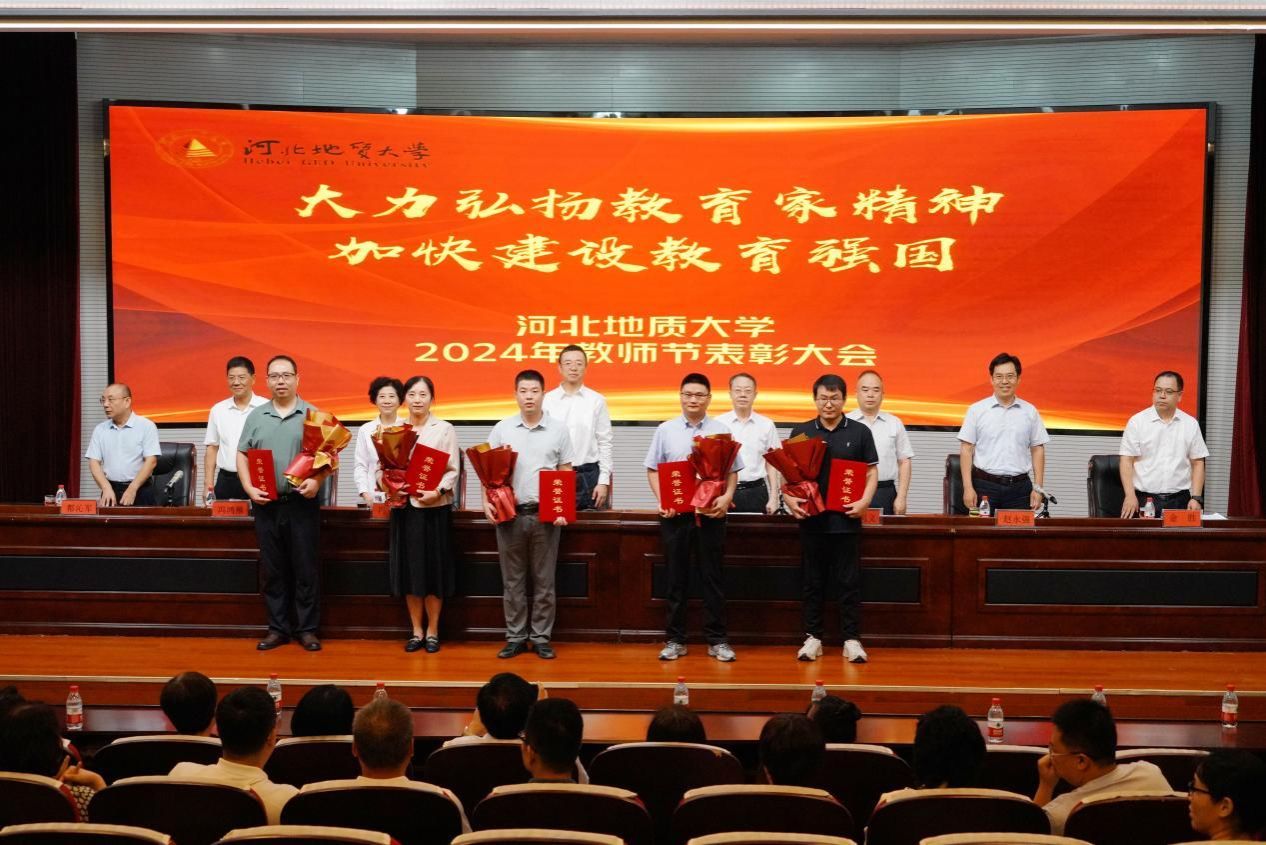 奏唱国歌后,副校长金胜宣读了《bat365正版唯一官网关于表彰2023年度先进集体、优秀教师和先进工作者的决定》;副校长都沁军宣读了《中共bat365正版唯一官网委员会关于表彰2024年校级师德标兵的决定》;副校长赵永强宣读了《bat365正版唯一官网关于表彰2023年度学校教师标兵的决定》;副校长冯鸿雁宣读了《中共bat365正版唯一官网委员会关于表彰2024年河北省师德标兵称号的通知》;校党委副书记侯书文宣读了《bat365正版唯一官网2024年关于表彰学校从事教育工作满三十年教职员工的决定》。校领导分别为获奖教师和团队颁发了荣誉证书。
