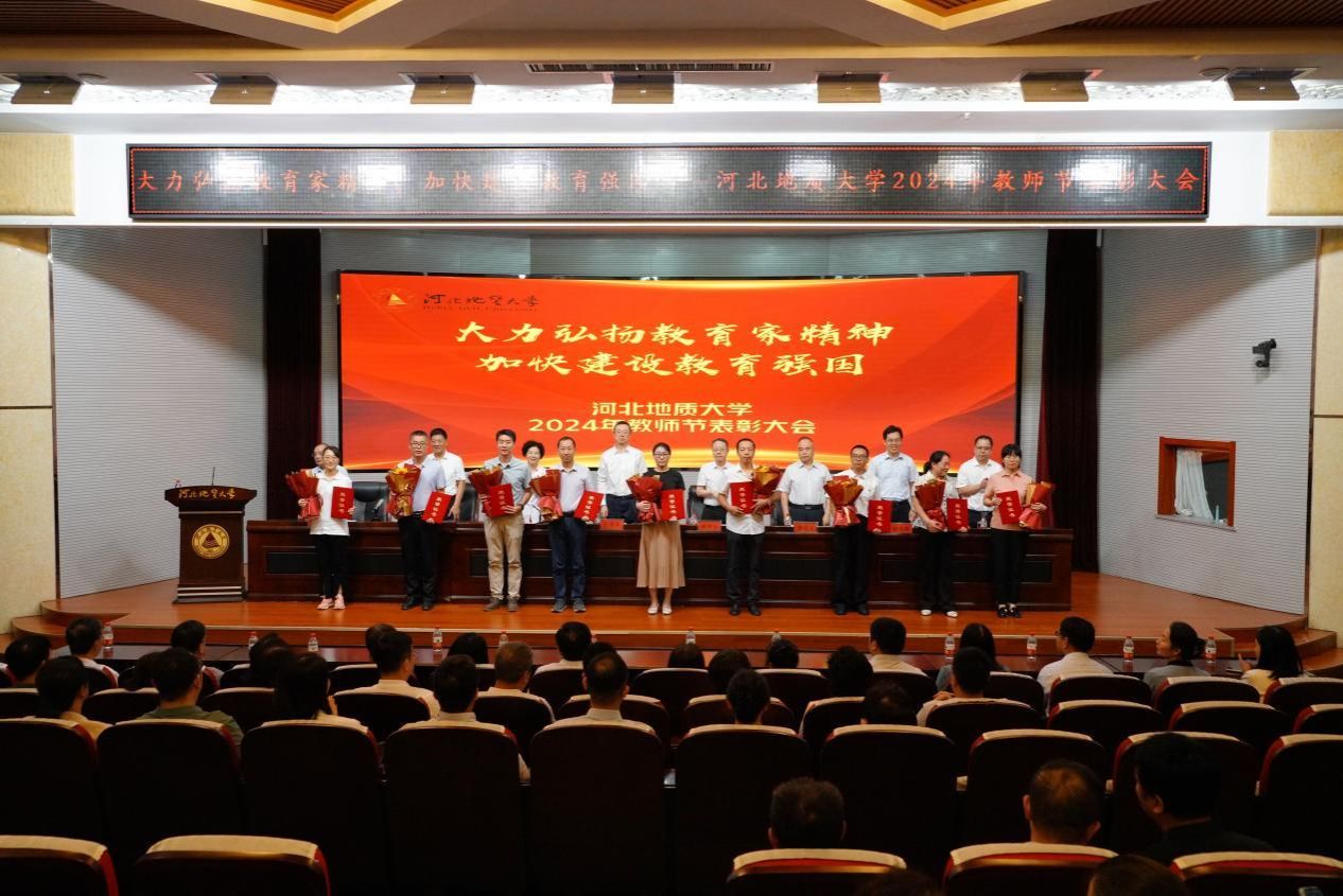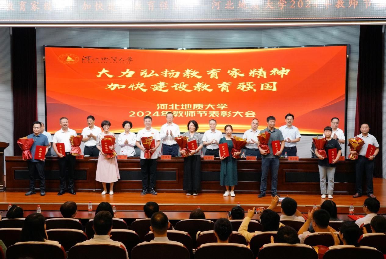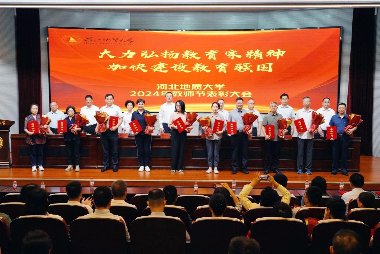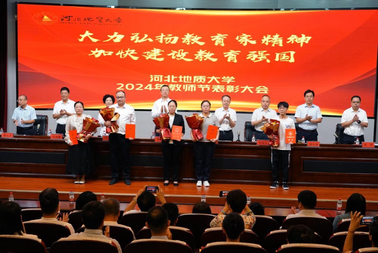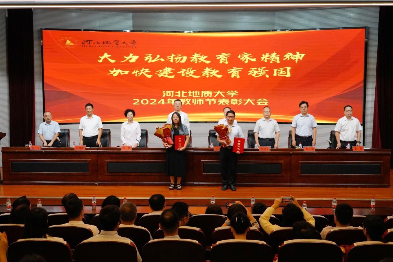 奏唱国歌后,副校长金胜宣读了《bat365正版唯一官网关于表彰2023年度先进集体、优秀教师和先进工作者的决定》;副校长都沁军宣读了《中共bat365正版唯一官网委员会关于表彰2024年校级师德标兵的决定》;副校长赵永强宣读了《bat365正版唯一官网关于表彰2023年度学校教师标兵的决定》;副校长冯鸿雁宣读了《中共bat365正版唯一官网委员会关于表彰2024年河北省师德标兵称号的通知》;校党委副书记侯书文宣读了《bat365正版唯一官网2024年关于表彰学校从事教育工作满三十年教职员工的决定》。校领导分别为获奖教师和团队颁发了荣誉证书。