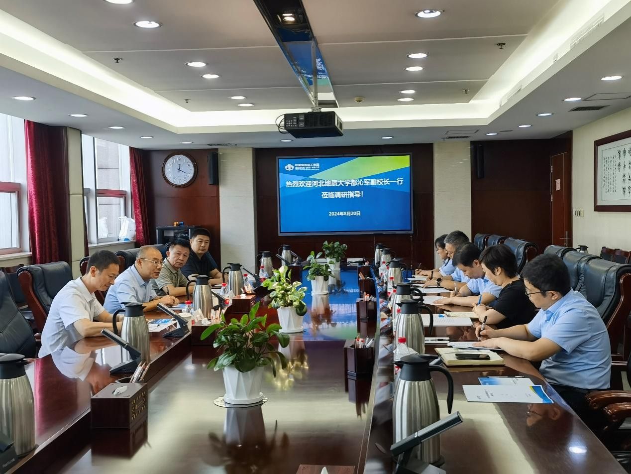 为进一步提高毕业生就业质量、加强科研项目合作,2024年8月20日上午,bat365正版唯一官网都沁军副校长一行,走访中煤科工西安研究院(集团)有限公司,与中煤科工西安研究院(集团)有限公司党委委员及副总经理王皓(2000级校友)、党委干部部(人力资源部)主任许翠华、科技发展部主任赵兆、科技创新研究院副院长王晓东、《煤田地质与勘探》期刊执行主编晋香兰、党委干部部(人力资源部)业务主管方刚等进行座谈交流。座谈会由许翠华主持。