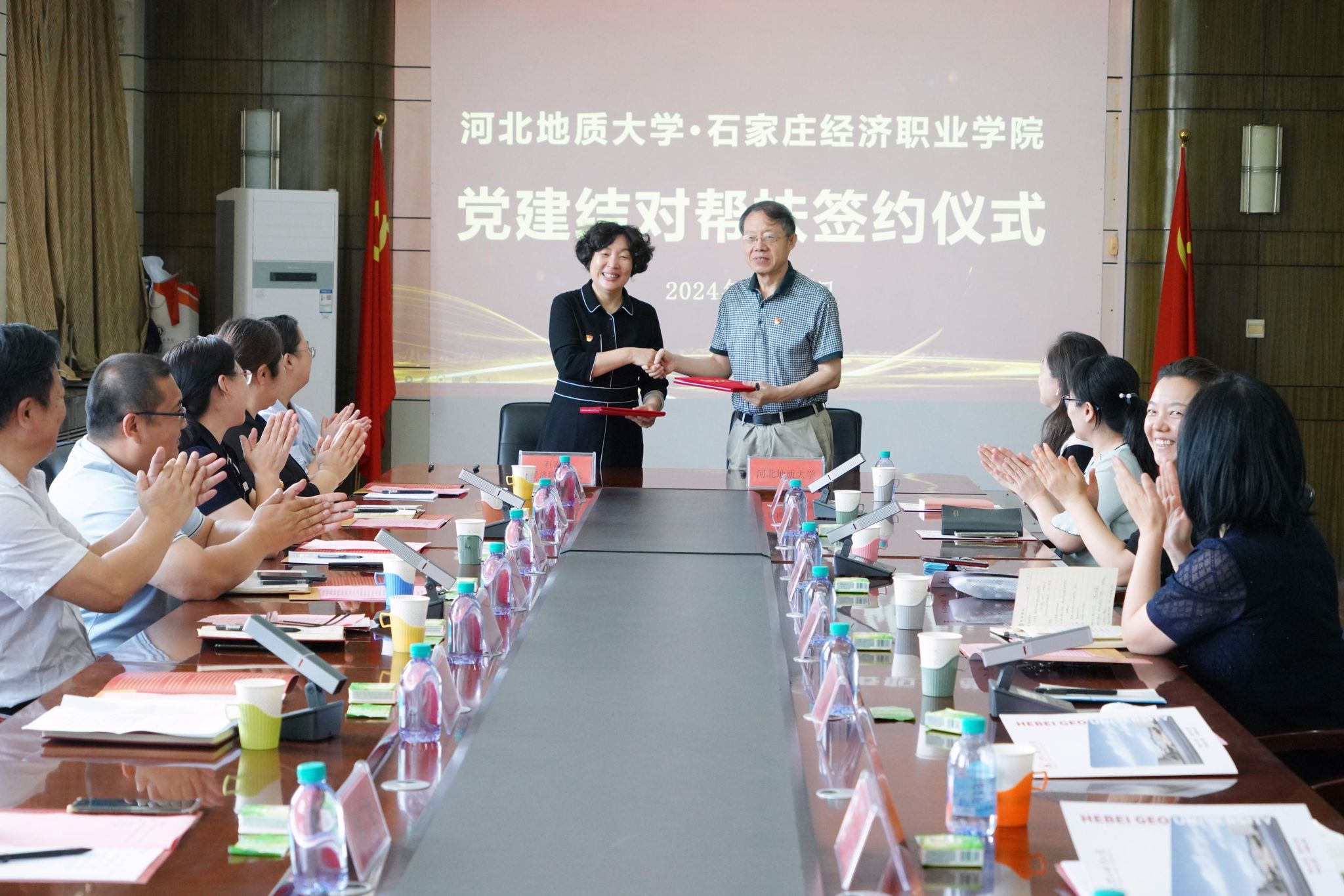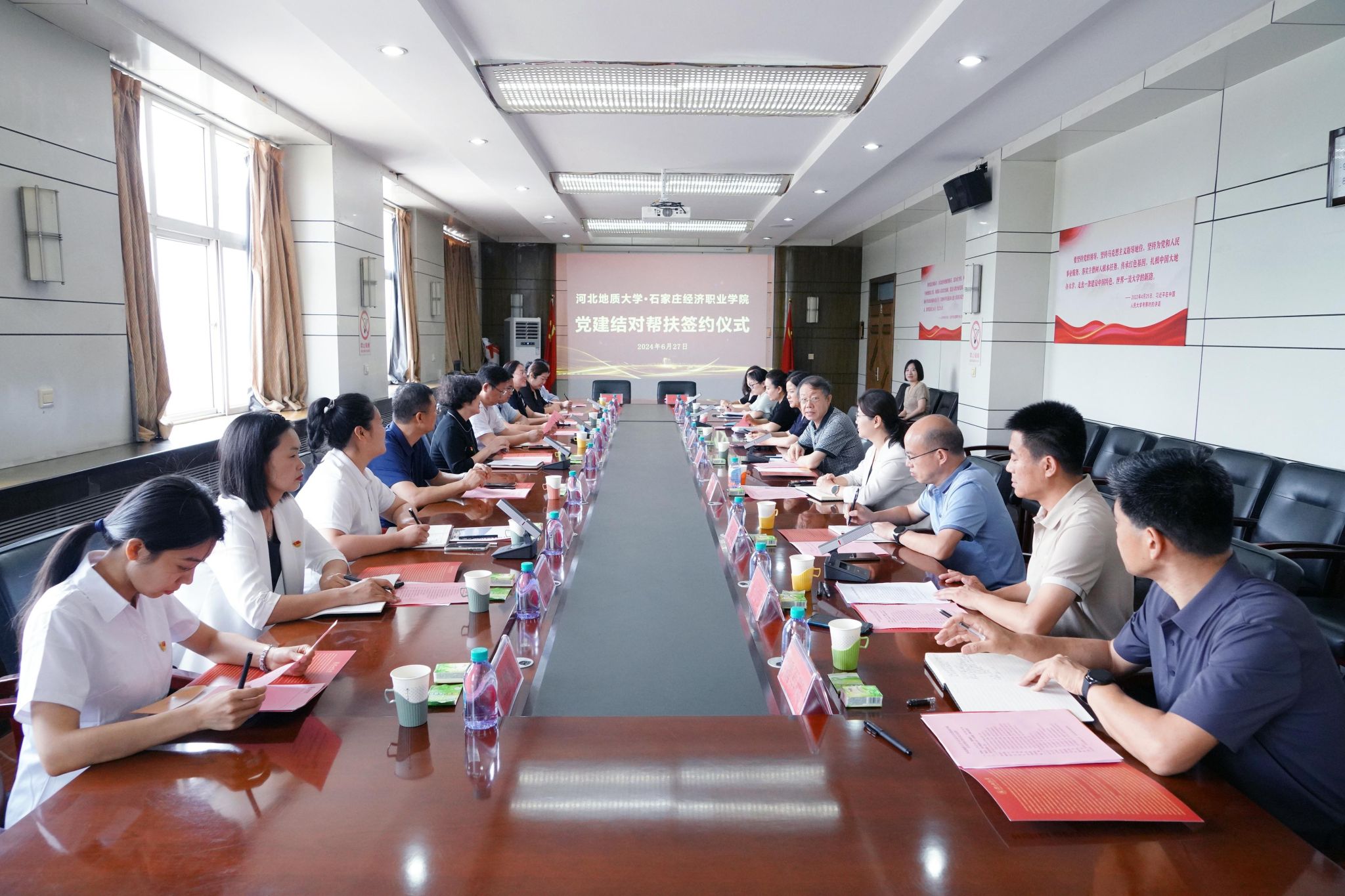 6月27日上午,bat365官网与石家庄经济职业学院在4楼会议室共同签署了党建结对帮扶协议。校党委副书记侯书文、石家庄经济职业学院党委书记贾喜环,双方党委组织部、结对的基层党组织负责人参与签约仪式。校党委组织部副部长冯天明主持会议。