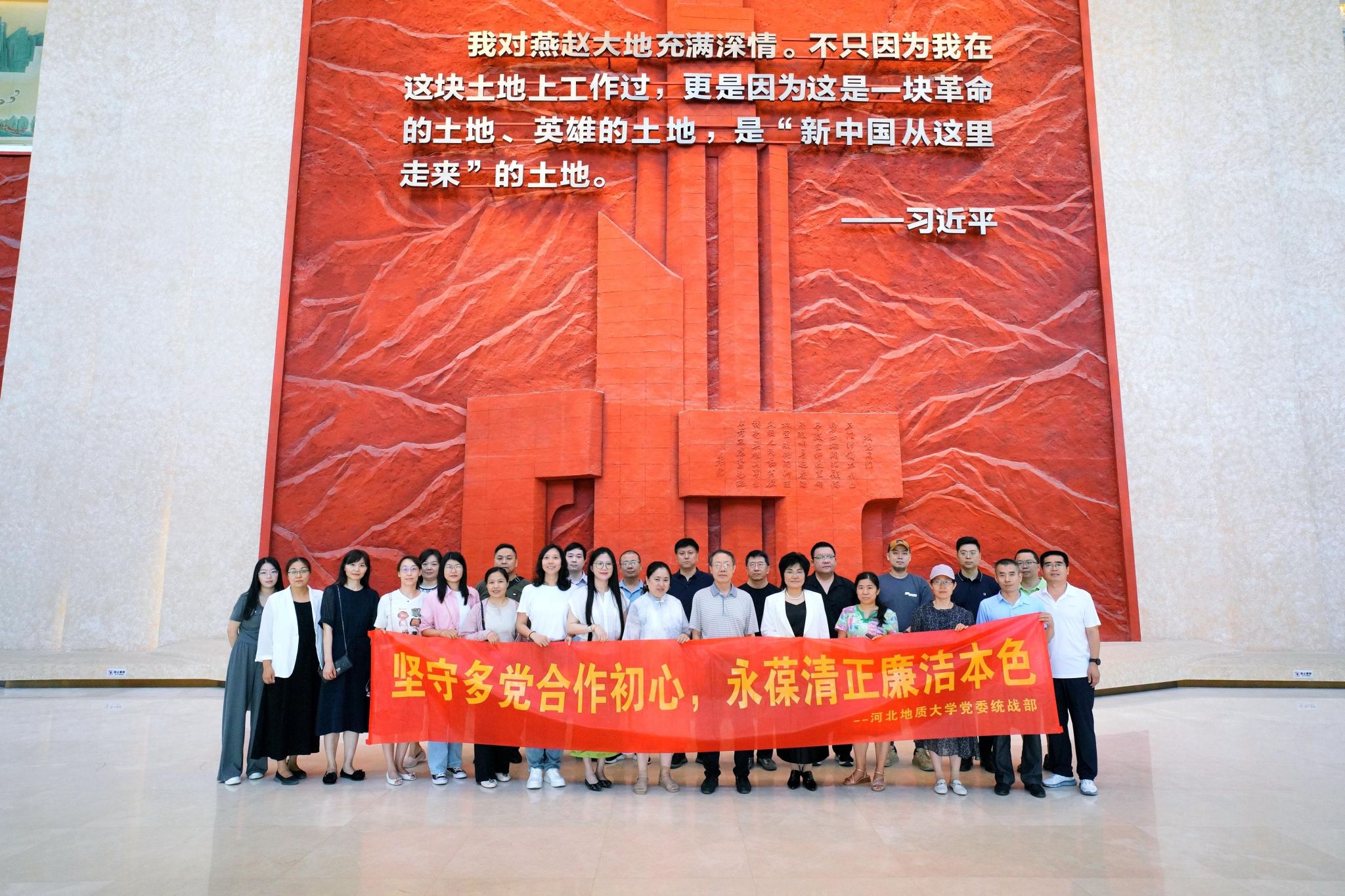 为深入开展统一战线学习教育,6月18日,在校党委统战部的组织和带领下,bat365官网举行“坚守多党合作初心,永葆清正廉洁本色”统一战线主题教育活动。校党委副书记侯书文、党委统战部常务副部长蔡建英、学校民革、民进、民建、民盟、农工党、九三学社、无党派人士、归国留学人员、侨眷代表等成员代表30余人参加了石家庄解放纪念馆主题教育活动。