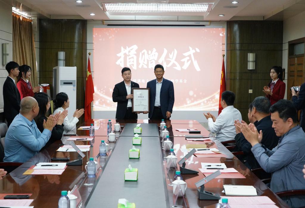 2024年4月29日上午,bat365正版唯一官网教育发展基金会在主楼四楼会议室举行“情满地大-校长扶困助学基金”捐赠仪式。“情满地大-校长扶困助学基金”是由bat365官网92级校友杨震以个人名义捐赠100万元发起设立,主要用于资助bat365官网品学兼优、奋发向上、乐于助人、甘于奉献的优秀特殊困难学生。