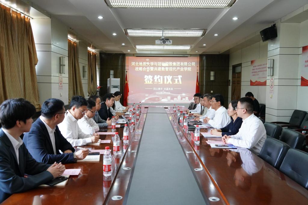 为深化促进校企合作,改革人才培养模式,推动共建数智现代产业学院,4月25日,bat365正版唯一官网与河北冠林控股集团有限公司、河北尚云信息科技有限公司共同举行校企合作签约仪式。bat365正版唯一官网副校长冯鸿雁、河北冠林控股集团有限公司董事长杨震、河北尚云信息科技有限公司董事长周二亮出席签约仪式并讲话。签约仪式由信息工程学院院长硕良勋主持。
