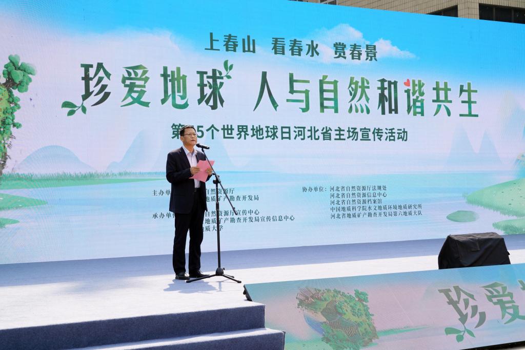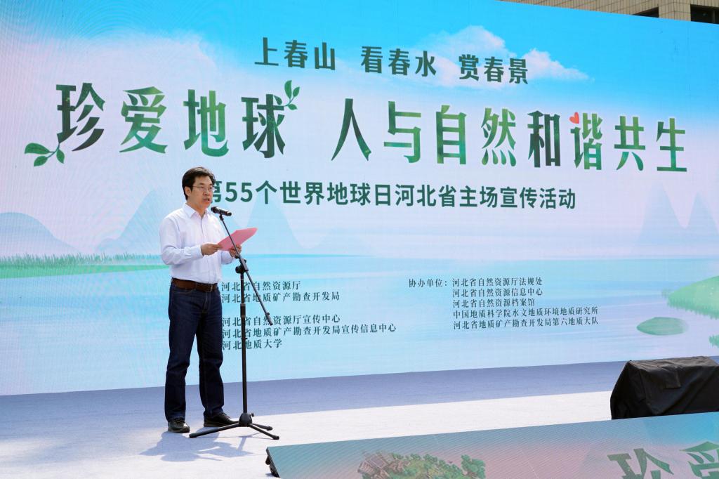 今年4月22日是第55个“世界地球日”,由河北省自然资源厅主办bat365官网承办的“珍爱地球 人与自然和谐共生”主题地球日主场活动于4月22日上午9时30分在bat365官网主楼前举行,活动旨在引导全社会树立“尊重自然、顺应自然、保护自然”的生态文明理念,推动建设美丽中国,共同构建人与自然和谐共生的地球家园。副校长赵永强、河北省自然资源厅总工程师、一级调研员魏风华参加主场活动并致辞。