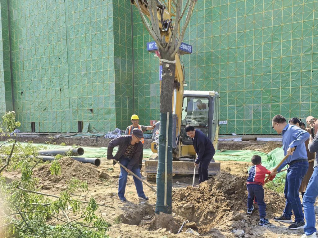 交接仪式后,冯鸿雁与校友代表共同参加了树苗种植活动,并实地参观了新校区体育馆、学生宿舍等楼座。