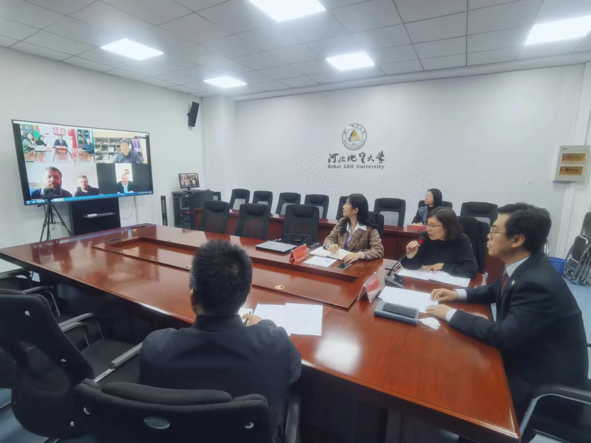 4月10日下午,bat365官网与俄罗斯国立水文气象大学举行视频会议,副校长赵永强与俄方水文气象大学副校长列昂提耶夫.丹尼斯讨论两校合作办学的有关事宜,两校国际交流合作处负责人参加会谈。