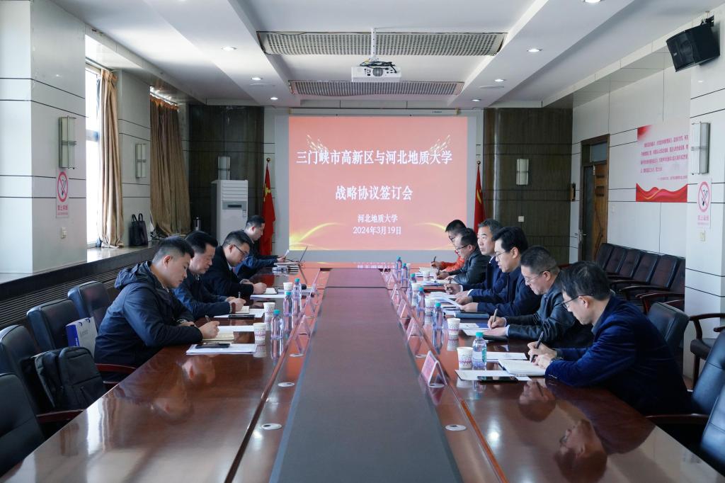 签约仪式前,双方举行了交流座谈会。赵永强在欢迎致辞中介绍了学校“资源环境+”多学科协同发展和深度交叉融合的办学特色,希望此次与三门峡高新区签订战略协议,能够充分发挥双方的资源优势,进一步扩展bat365官网与三门峡市合作的广度和深度,建立稳定长久的合作伙伴关系。