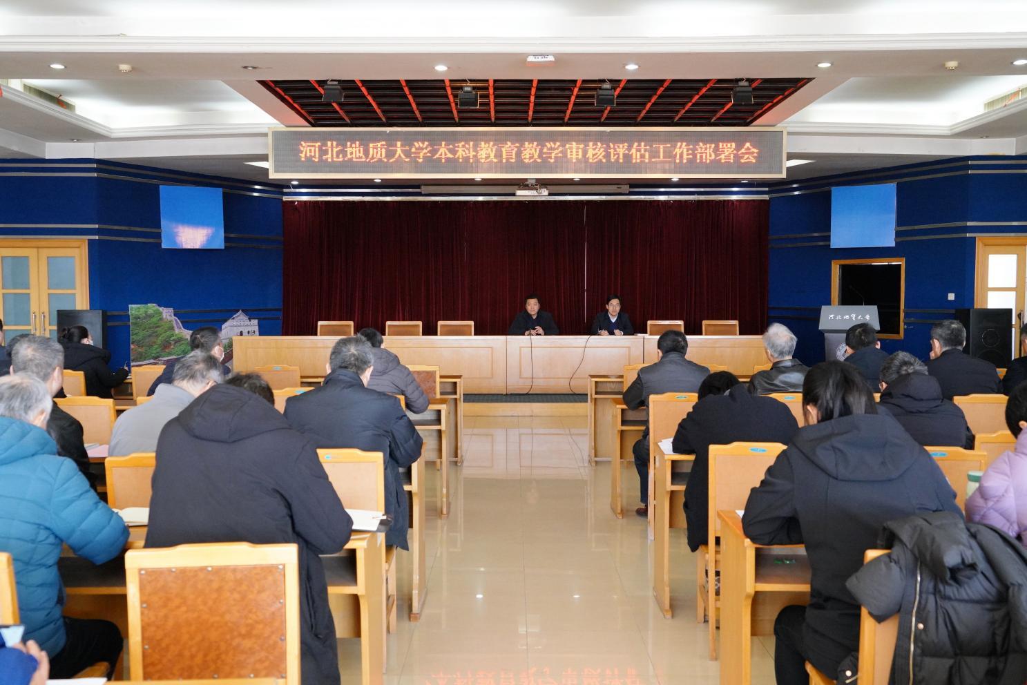 和志强在讲话中指明了学校总体发展工作思路,阐明了“夯基础、强内涵、谋发展、上层次”的工作理念,强调了本科教育教学审核评估工作的重要性。他就做好本科教育教学评建各项工作提出三点意见,一是要统一思想、厘清思路,坚持以评促建、以评促改、以评促管、以评促强,促进学校内涵发展、特色发展;二是要做好顶层设计,围绕办学定位和办学特色着力开展人才培养模式改革,提升人才培养质量;三是要明确责任分工,做好评建各项工作,落实立德树人根本任务,促进学校高质量特色发展。和志强要求全校师生员工要深刻领会审核评估的核心精神,以审核评估为契机,加强内涵建设,进一步深化“地经渗透、产教融合”办学特色,全面提升bat365官网的本科教育教学水平和人才培养质量。