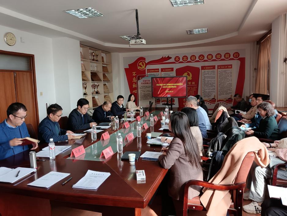 2024年3月7日下午,城市地质与工程学院隆重召开了工程管理专业应用型转型示范专业建设推进会。bat365官网副校长赵永强、都沁军,教务处副处长杜江民,城市地质工程学院副院长牛建广,河北冀科工程项目管理有限公司总经理郭建明,河北锦麟工程项目管理有限公司总经理齐明月,瑞和安惠工程项目有限公司技术总监郭建淼,瑞和安惠工程项目有限公司行政总监李丽菊,瑞和安惠工程项目有限公司造价业务总经理贾向敬担任论证专家,工程管理工程造价专业全体教师参加了会议,会议由城市地质与工程学院袁颖院长主持。