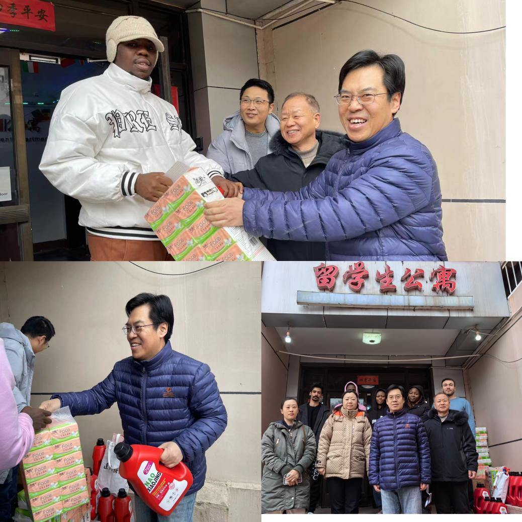 2024年2月4日农历腊月二十五,新春将近,年味正浓。副校长赵永强和国际教育交流中心工作人员对bat365官网在校留学生进行了走访慰问,为留学生送上了新年慰问礼包,并代表学校感谢同学们对中国来华留学教育工作的积极响应与大力支持,希望同学们在新的一年里继续奋进,收获更多成果,并做好中外友谊的传播者。同时,赵永强还慰问了春节期间留守在留学生公寓的宿管工作人员,代表学校对他们“舍小家、为大家”的无私奉献精神表示感谢,祝愿大家新春大吉,万事如意!