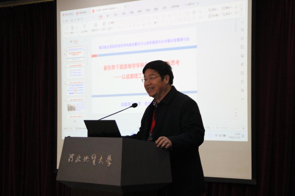 成都理工大学朱创业教授以“新形势下旅游地学学科专业发展的新思考——以成都理工大学为例”为题,提出了新形势下旅游地学学科发展的建议。