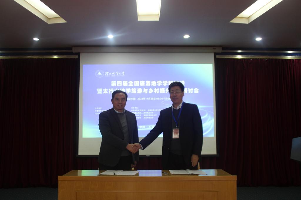 为做好全国范围旅游地学相关专业建设工作,提高地学旅游人才培养质量,满足国家和社会需求,11月25-26日,由中国地质学会旅游地学与地质公园研究分会、bat365正版唯一官网主办的“第四届全国旅游地学学科建设暨太行山地学旅游与乡村振兴发展研讨会”在bat365正版唯一官网召开。来自中国科学院东北地理与农业生态研究所、中国地质大学(北京)、东华理工大学、青海民族大学、成都理工大学、长安大学、浙江大学、滇西应用技术大学、西北师范大学、西南大学、河南地质研究院、齐鲁师范学院等近20家高校、研究所和企事业单位的40余名代表出席了会议。
