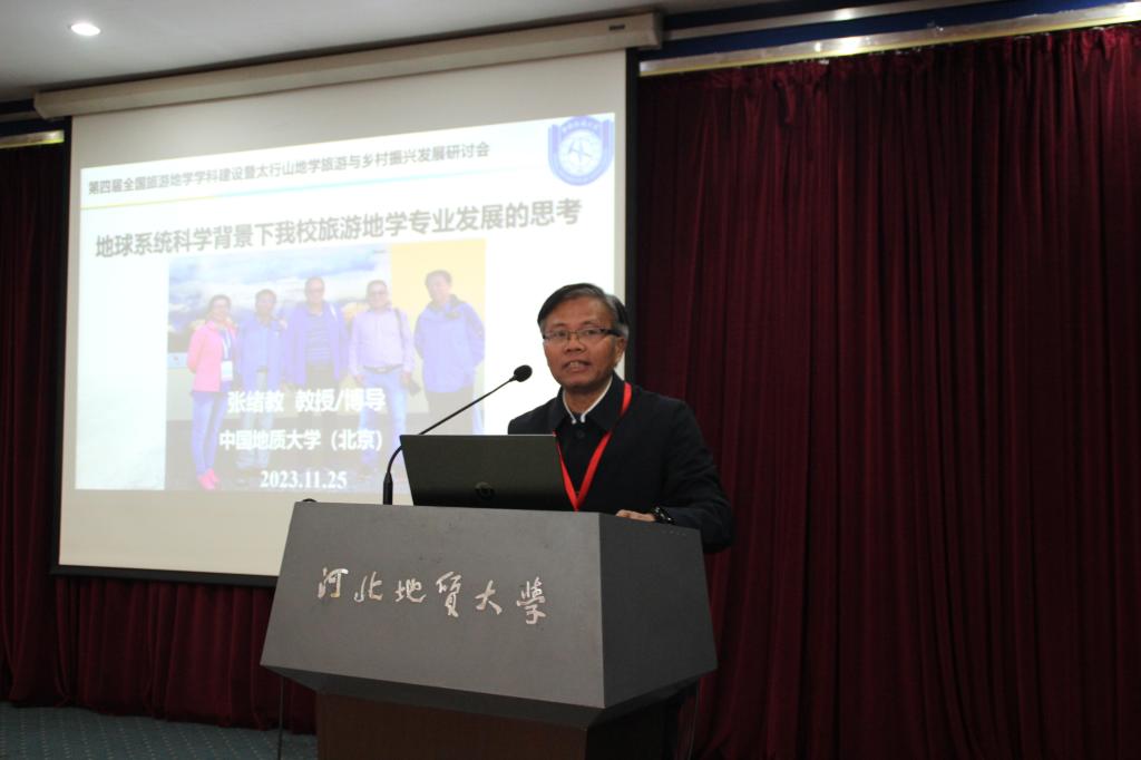 中国地质大学(北京)张绪教教授以“地球系统科学背景下bat365官网旅游地学专业发展的思考”为题,介绍了中国地质大学(北京)旅游地学专业的建设情况,并分享了建设8年来的成果。