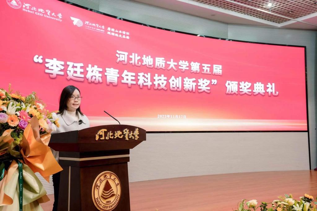 李廷栋院士特别代表李晓华女士宣读李院士贺信。李廷栋院士希望,获奖的老师和同学响应习近平总书记号召,传承和弘扬老一辈科学家胸怀祖国,心系人民的爱国情怀,努力学习、刻苦钻研,勇于创新,把自己培养成长成一位德才兼备的高水平科技人才,为地质事业的高质量发展作出更大贡献,为实现中华民族伟大复兴的中国梦作出更大贡献。
