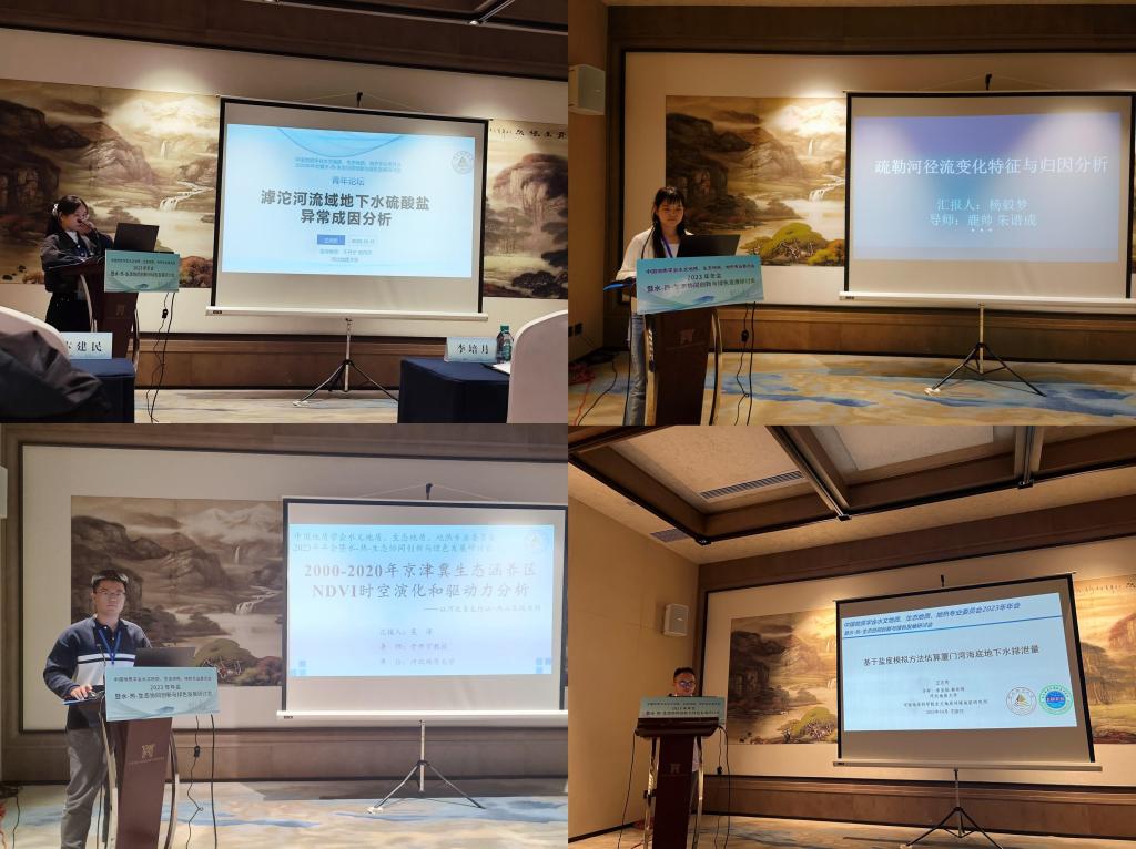 于开宁带队参会,负责召集并主持青年论坛。赵志瑞教授、刘昭副教授、周亚红副教授、闫佰忠副教授分别作了题为《白洋淀入淀河流污染负荷削减技术研究》、《西藏东南部典型地热系统成因及开发利用》、《有机物污染引发的地下水环境水文地球化学效应研究》、《压采条件下典型漏斗区地下水系统响应机制研究》的学术报告;研究生吴涛、王润忠、杨毅梦分别作了题为《2000-2020年京津冀生态涵养区NDVI时空演化和驱动力分析》、《滹沱河流域地下水硫酸盐异常成因分析》、《疏勒河径流变化特征与归因分析》的学术报告。