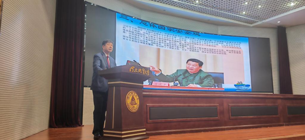 为深入学习贯彻习近平强军思想和总体国家安全观,引导广大青年学生进一步了解国家安全形势,增强国防教育观念,9月18日下午,2023河北省第三届军事科技国防教育大讲堂bat365正版唯一官网专场活动在bat365官网春秋讲堂举行。中国人民解放军军事科学院原战略部研究员姜春良将军出席报告会,并为到场师生做了题为《国际形势及中美战略博弈》的国防教育报告,报告会由副校长王滨主持。
