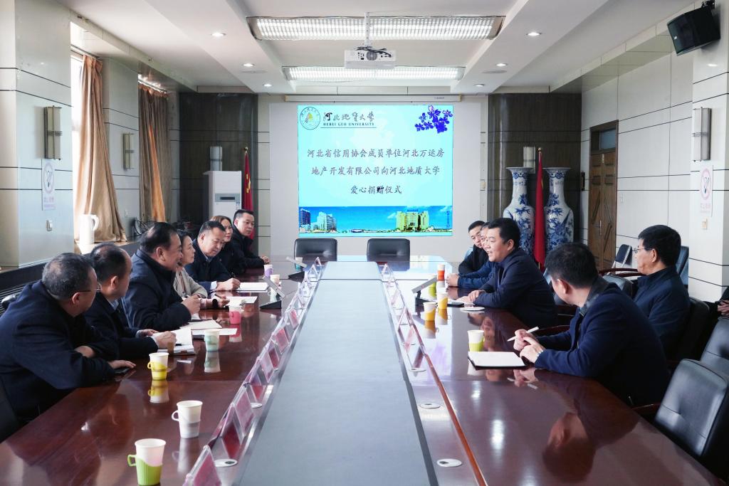 捐赠仪式前,学校、捐赠方及相关政府部门特邀嘉宾在学校四楼会议室召开座谈会。省工商联副主席张京红、省工商联经济服务部部长雒铁虎、省政务办社会信用体系建设管理处二级调研员高卫斌、省信用协会执行会长白建军、省信用协会监事会主席、世纪欣龙实业有限公司董事长李占芹等嘉宾参加座谈会,校长和志强、副校长冯鸿雁、国有资产管理处处长伦关臣等参加座谈会。