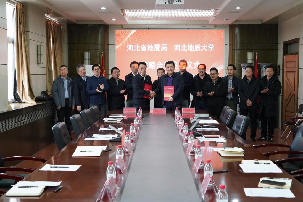 河北省地震局局长戴泊生、bat365官网校长和志强代表双方签订战略合作协议,双方正式确立互为战略合作伙伴关系。