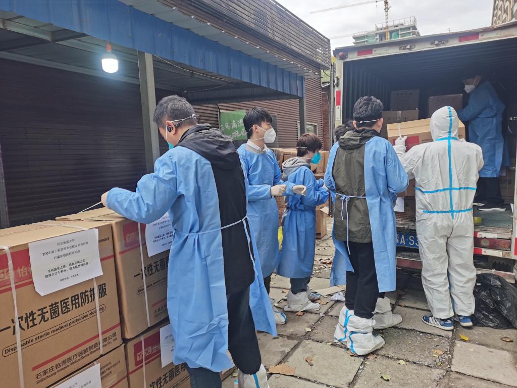“羊有跪乳之恩,鸦有反哺之义。借得大江千斛水,研为翰墨颂师恩。”学校启动疫情防控应急处置一级响应以来,牵动了海内外无数校友的心,他们纷纷通过学校官微官博留言为母校祈福祝愿。心之所系,情之所至,无不希望母校早日抗疫成功。原管理科学与工程学院2007届工程管理专业校友在得知母校发生疫情之后,立刻开启了为母校抗疫捐款的行动。在一天多的时间内,共筹得善款22300元,已全部用于购买防疫物资,包括医用防护服700套、医用防护脚套700双、医用防护面罩700个、医用外科手套700副、N95医用无菌口罩1034个。11月12日,校友捐赠的抗疫物资陆续运抵学校。