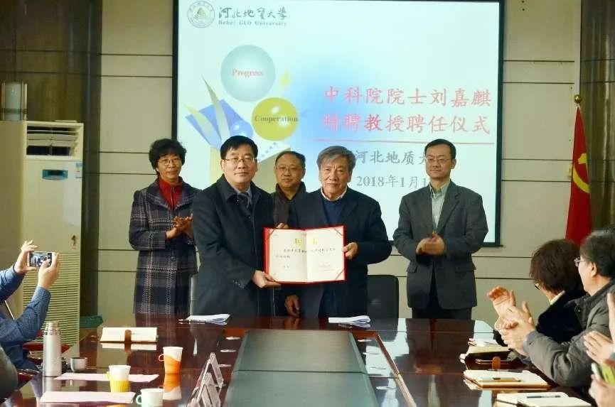 2018年1月17日,学校聘请中国科学院院士、中国科学院地质研究所原所长刘嘉麒为bat365官网特聘教授。图为刘嘉琪特聘教授聘任仪式。